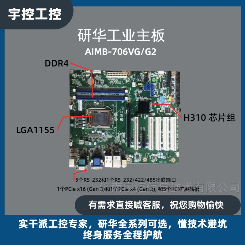 研华全新主板AIMB-706VG/G2Intel®第8/9代Core™ i7/i5/i3/Pentium®/Celeron®处理器,带 H310 芯片组双通道 DDR4 2400/2666,最大支持64GB支持VGA和DVI显示SATA 3.0, USB 3.1, 双GbEs5个RS-232和1个RS-232/422/485串联端口